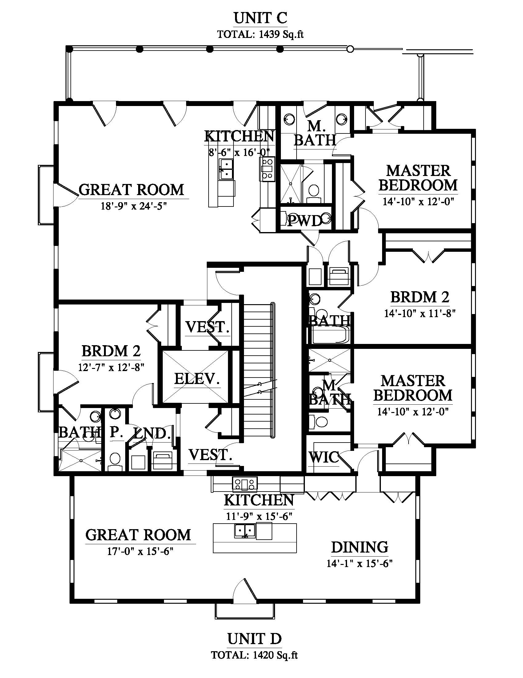 Call for pricing and availability. Unit A: 1439 SF. Unit B: 1420 SF. Unit C: 1439 SF. Unit D: 1420 SF. Unit E: 2085 SF.