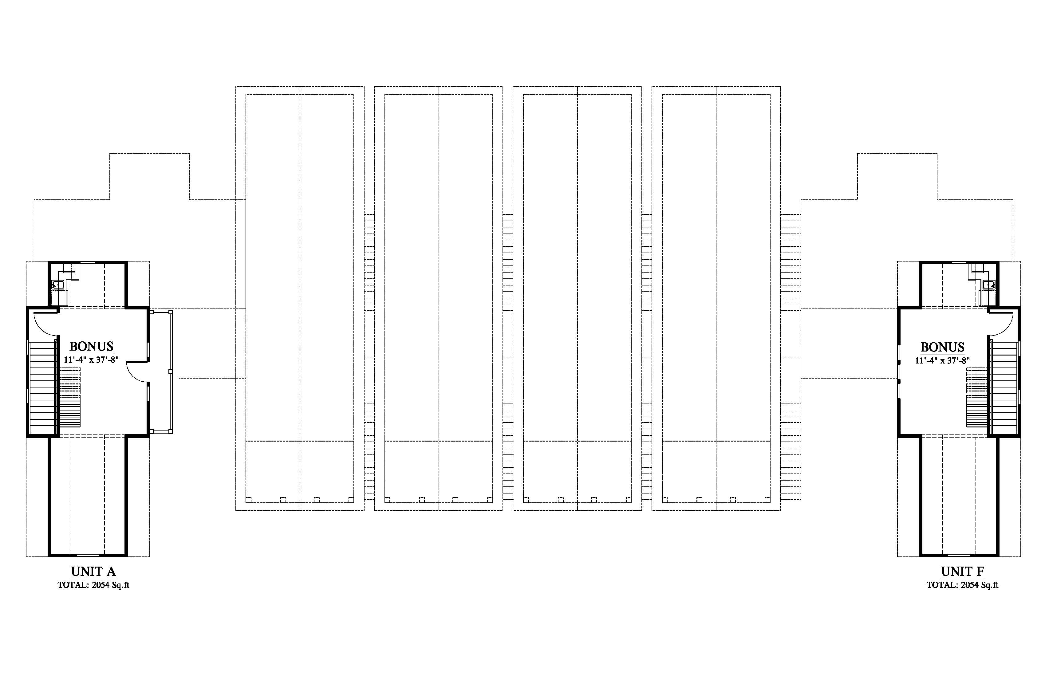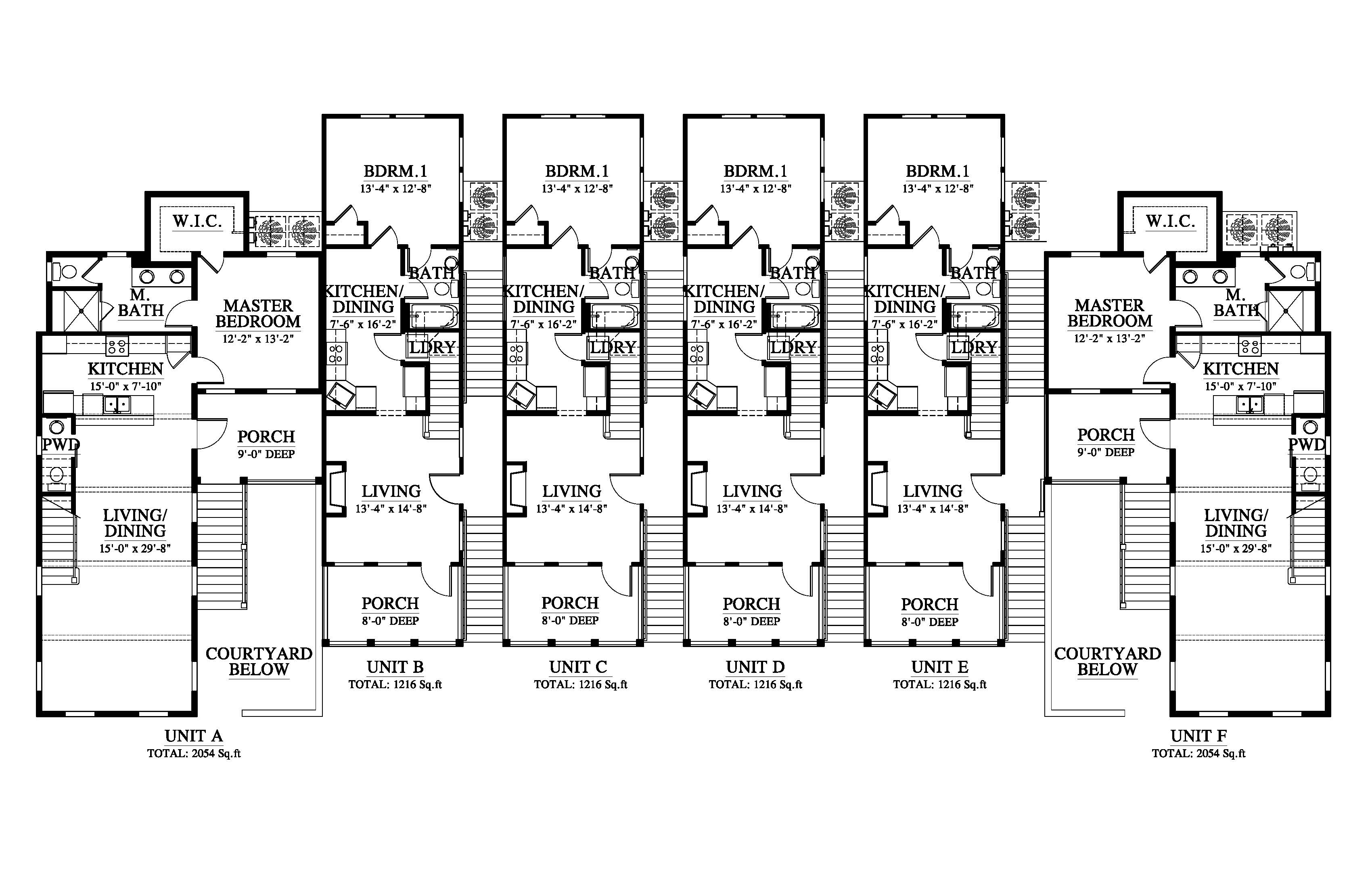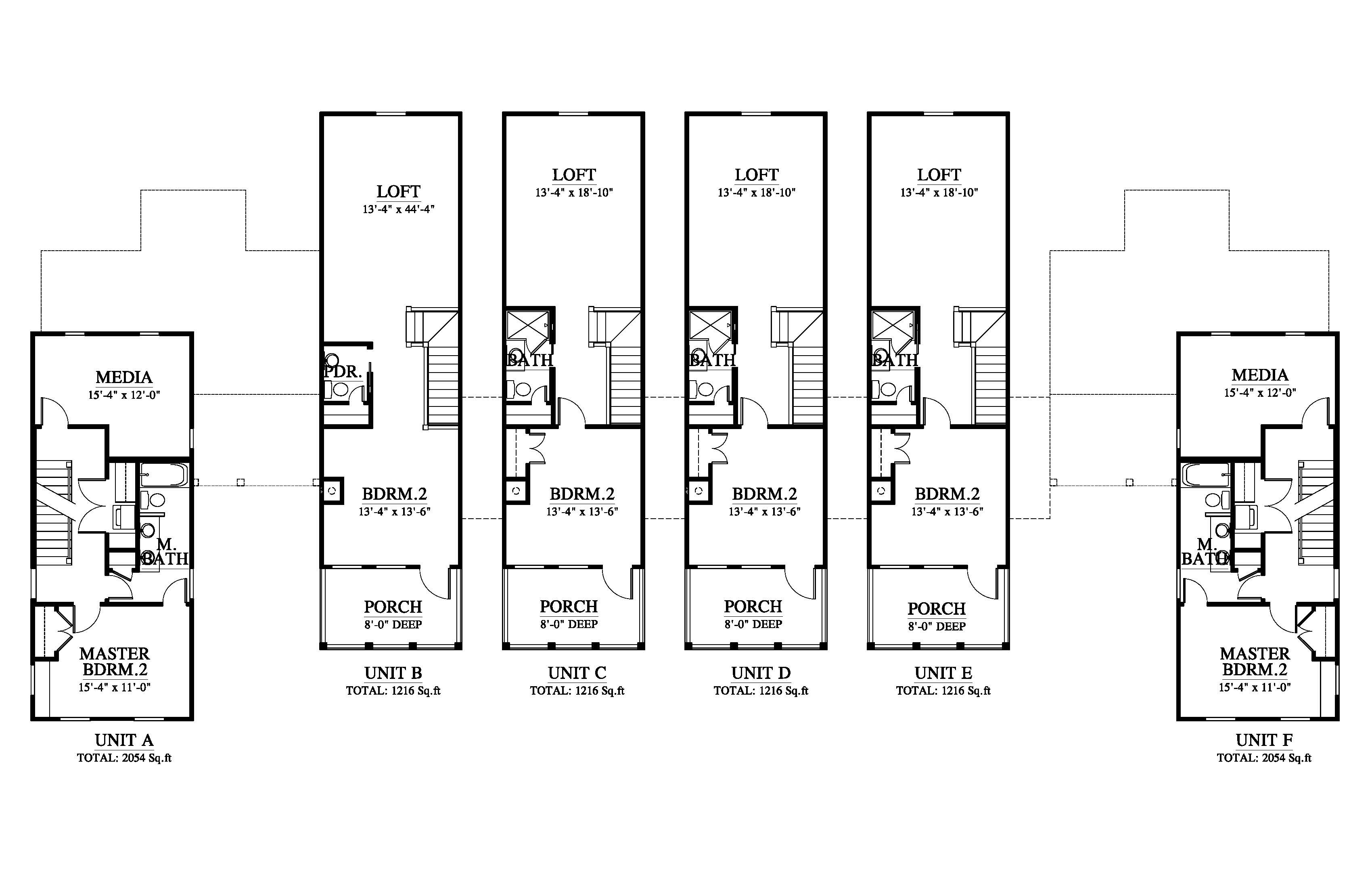 Call for Pricing. Unit A and F: 2054 SF each. Unit B-E: 1216 SF each.